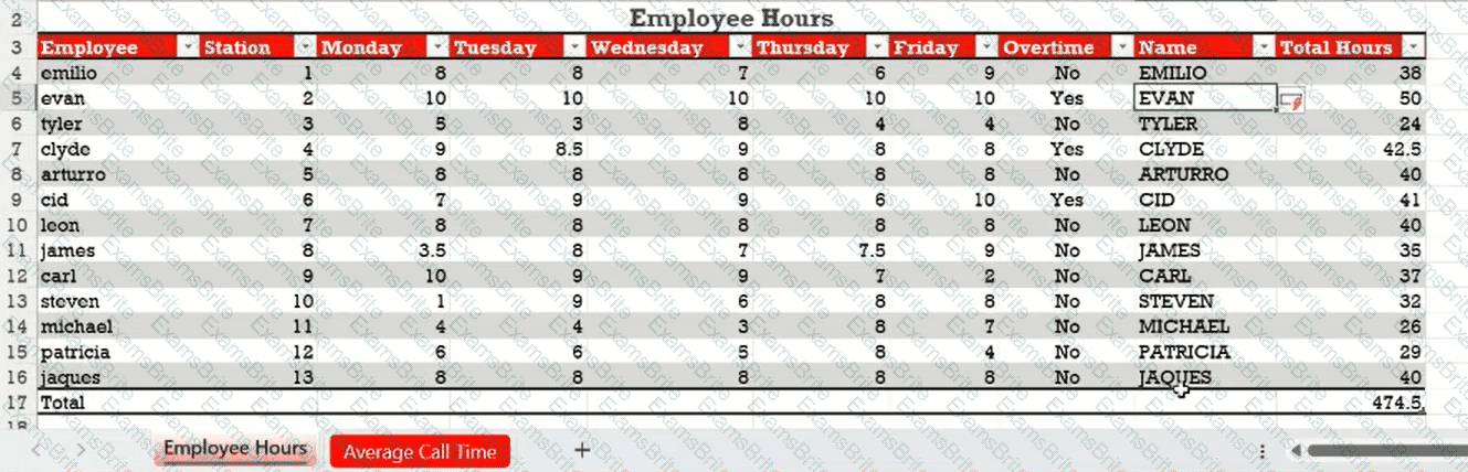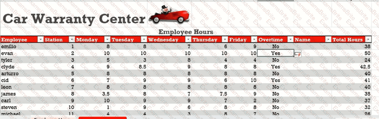 You are the supervisor for a Car Warranty Center. You use Excel to report employee hours and telephone calls.