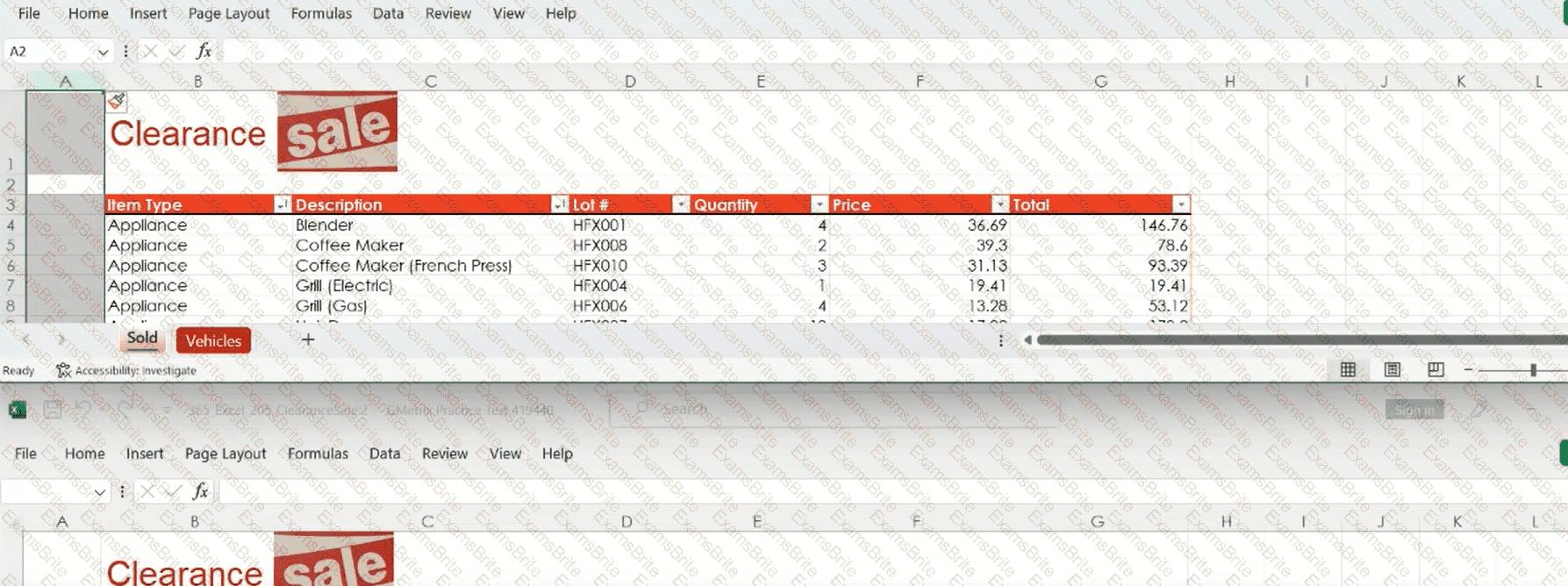 You are the administrative assistant for a retail company that is going out of business. You've been tasked to prepare a workbook for the clearance sale.