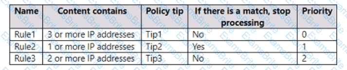 Which policy tip is displayed for each file? To answer, select the appropriate options in the answer area.