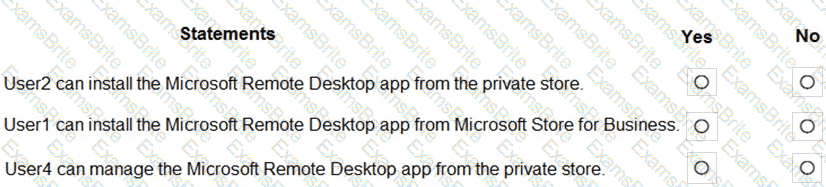 You have a Microsoft 365 tenant that is signed up for Microsoft Store for Business and contains the users shown in the following table.
