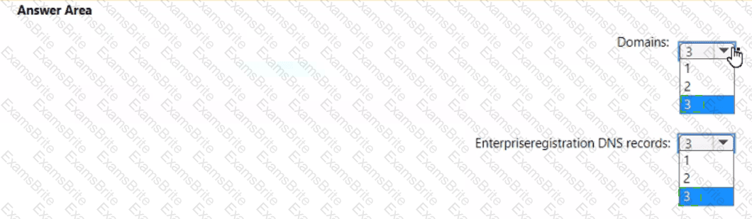 How many domains should you verify, and what is the minimum number of enterprise registration DNS records you should add? To answer, select the appropriate options in the answer area.