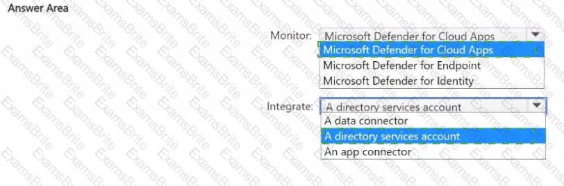 What should you use to monitor the activities, and what should you use to integrate Azure with Microsoft Defender XDR? To answer, select the appropriate options in the answer area.