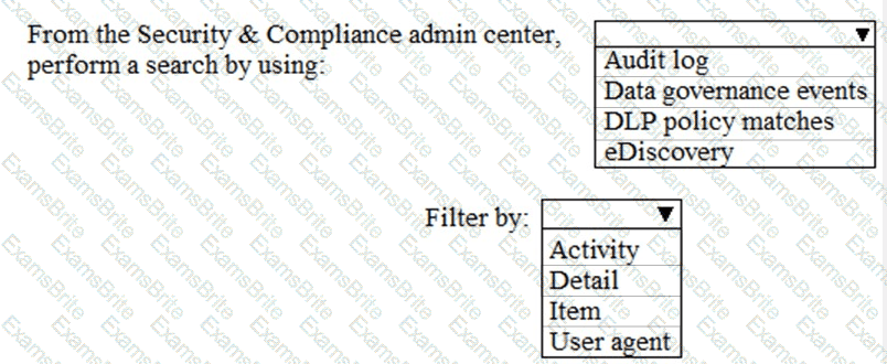 Which three actions should you perform in sequence from the Security & Compliance admin center? To answer, move the appropriate actions from the list of actions to the answer area and arrange them in the correct order.