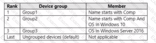 Your company uses Microsoft Defender for Endpoint. Microsoft Defender for Endpoint contains the device groups shown in the following table.