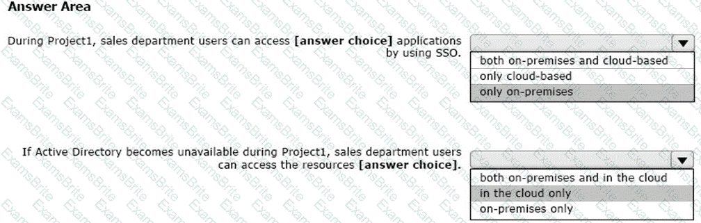 You need to ensure that all the sales department users can authenticate successfully during Project1 and Project2.