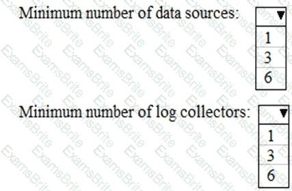 What is the minimum number of data sources and log collectors you should create from Microsoft Cloud App Security? To answer, select the appropriate options in the answer area.