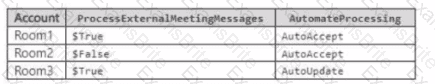 The Teams Rooms accounts have the Microsoft Exchange Online calendar processing parameters shown in the following table.