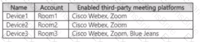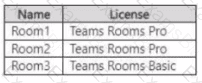 You have a Microsoft 365 E5 subscription that is linked to a Microsoft Entra tenant. The tenant contains the Microsoft Teams Rooms accounts shown in the following table.