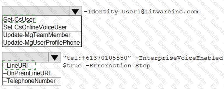How should you complete the PowerShell command? To answer, select the appropriate options in the answer area.