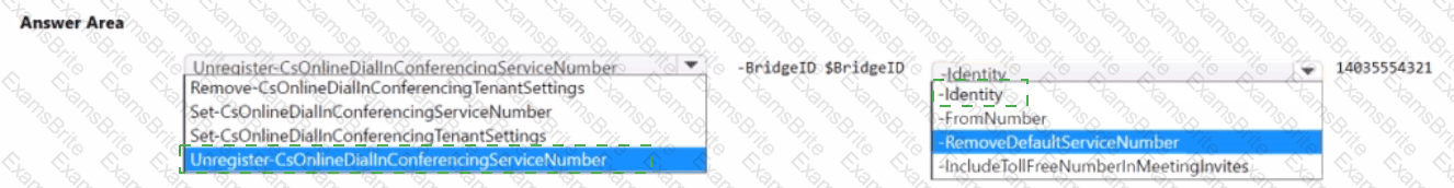 You discover that the Conference Bridge list contains two dial-in phone numbers for an office in Calgary. One of the dial-in phone numbers is +14035554321 and is configured as a secondary number for the Calgary office. The number is NOT set as the default.