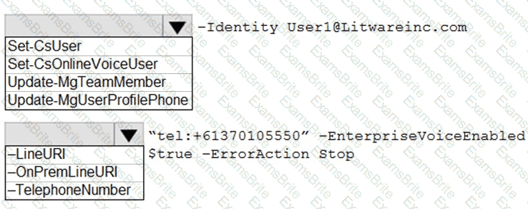 How should you complete the PowerShell script? To answer, select the appropriate options in the answer area.