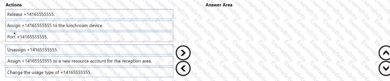 You need to implement the planned changes for the +14165555555 reception area number. You create a new call queue.