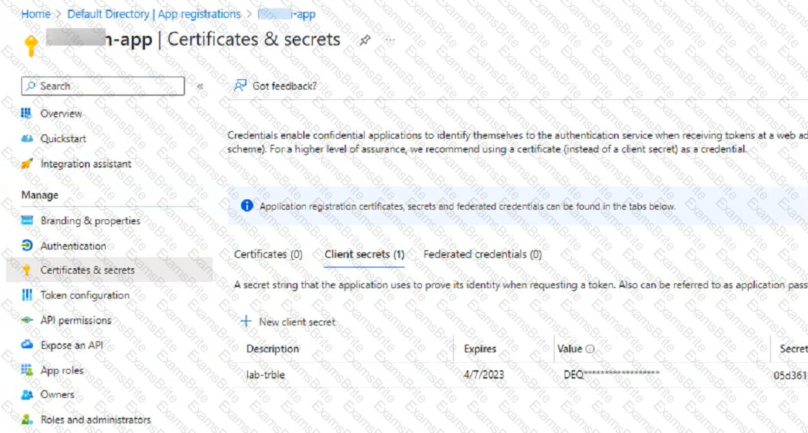 An administrator is trying to deploy a FortiGate VM in Microsoft Azure using Terraform However, during the configuration, the Azure client secret is no longer visible in the Azure portal.
