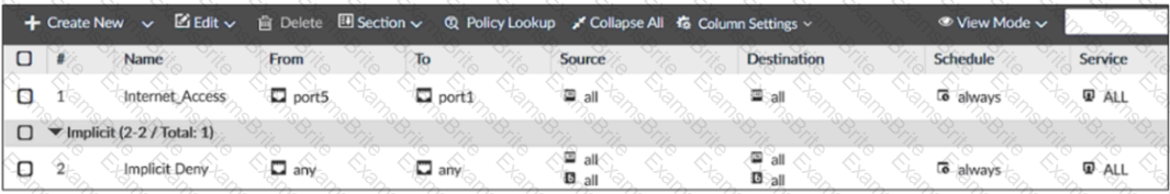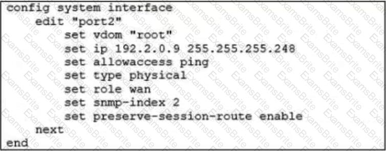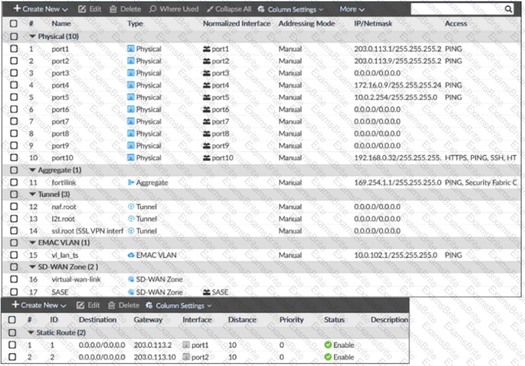 Based on the exhibit, which two actions does FortiGate perform on traffic passing through port2? (Choose two.)