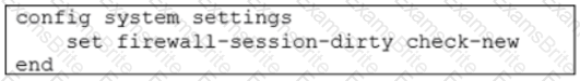 Based on the exhibit, which two actions does FortiGate perform on sessions after a firewall policy change? (Choose two.)