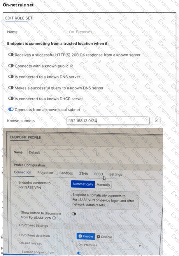 Jumpbox and Windows-AD are endpoints from the same remote location. Jumpbox can access the internet through FortiSASE, while Windows-AD can no longer access the internet. Based on the information in the exhibits, which reason explains the outage on Windows-AD? (Choose one answer)