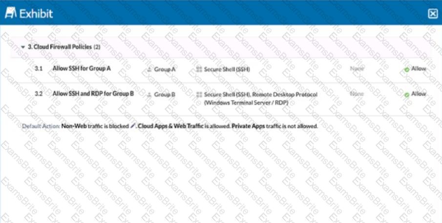 You configured a set of Cloud Firewall policies as shown in the exhibit and changed your Steering Configuration to All Traffic for Group A and Group B. Users in Group A report that they are unable to access a third-party server using TCP port 3389. Referring to the exhibit, which action correctly describes how you would allow these connections without allowing unnecessary access?