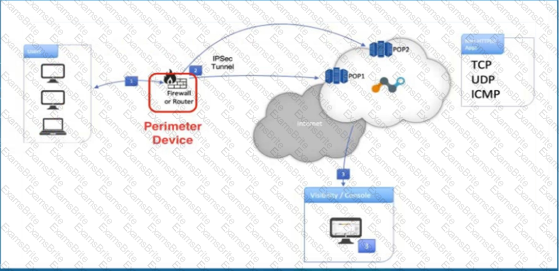 Referring to the exhibit, what are two recommended steps to be set on the perimeter device to monitor IPsec tunnels to a Netskope data plane? (Choose two.)