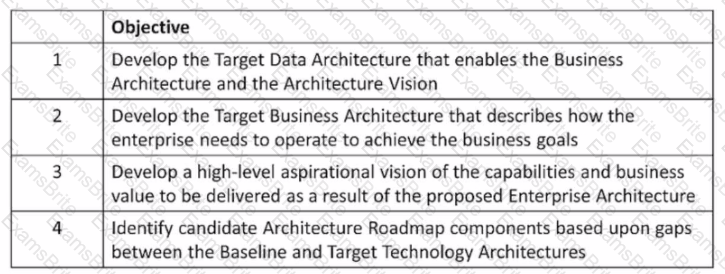 The architecture development project has just completed its Architecture Context iteration cycle and is about to begin the Architecture Definition iteration cycle. The company is using TOGAF for its internal Enterprise Architecture activities. It uses an iterative approach for executing Architecture Development Method (ADM) projects.