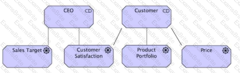 (A diagram showing aCEOconnected toSales TargetandCustomer Satisfaction, while aCustomeris connected toProduct PortfolioandPrice.Customer Satisfactionappears to be a shared concern.)