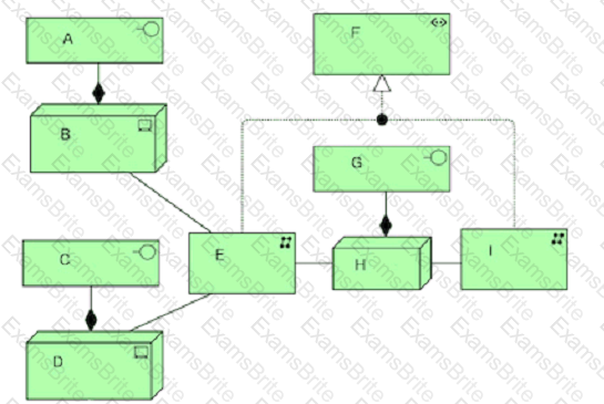 What correctly describes the elements E, F and I?