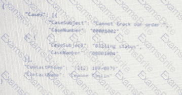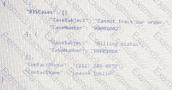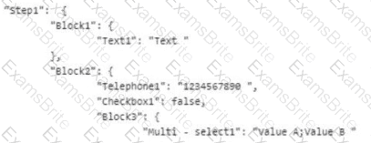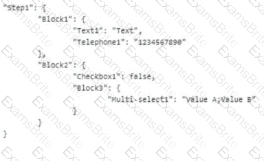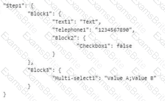 Refer to the exhibit below. What JSON from the DRGetContactDeteils action would display all six values correctly shown? BlkCases is a Repeat Block, and the names of the elements are the same as the label names without spaces.