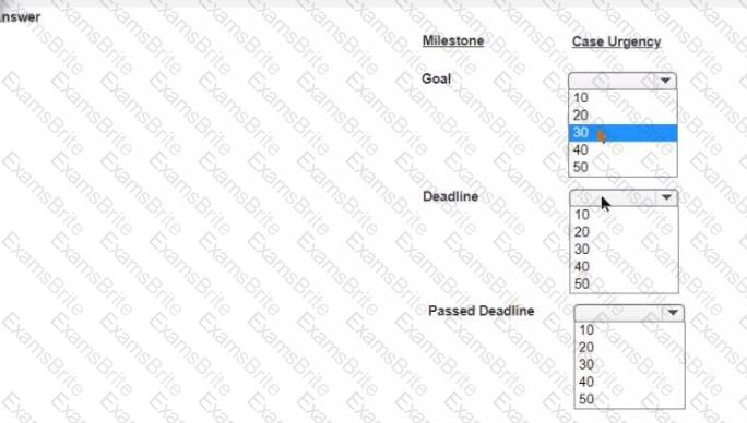 Answer area select the urgency value that the system sets if the assignment is not yet completed by the end of each milestone.