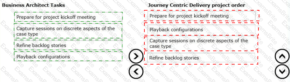 Select and move the Business Architect tasks to the Journey Centric Delivery project order column and place them in the correct order.