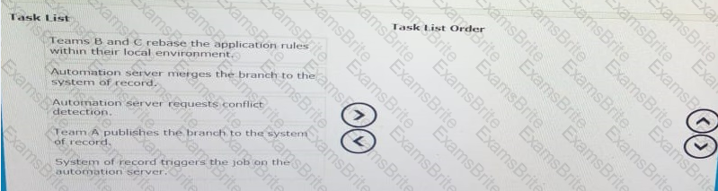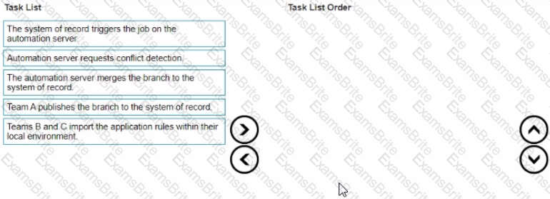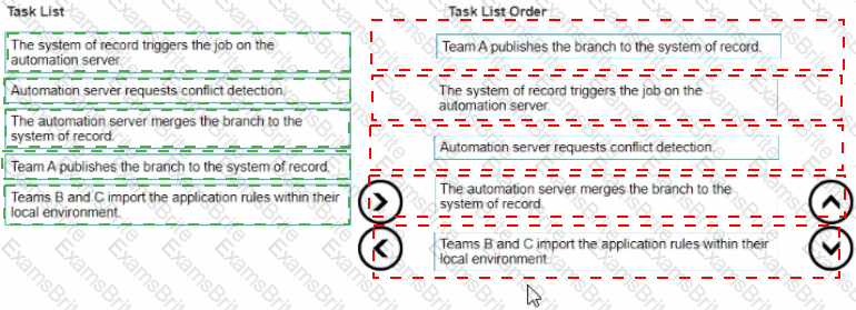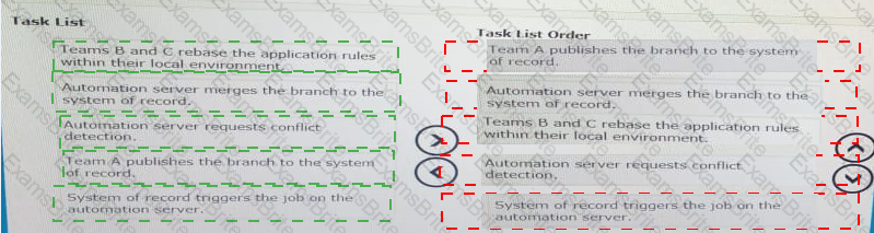 To ensure all development teams are working with the latest version of shared rule base, select and move all of the following tasks to the tasks List Order column and place them in the correct order.