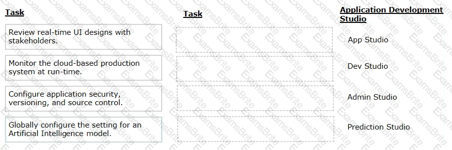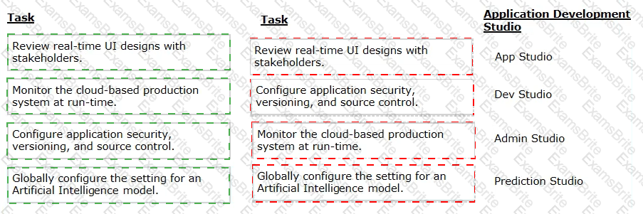 Select each task on the left and drag it to the corresponding Application Development Studio on the right, where the task can be completed.