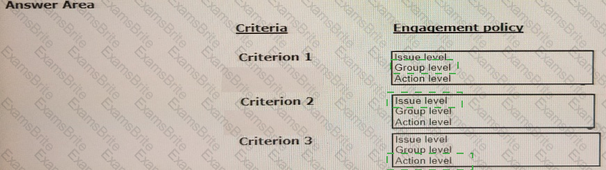 How do you configure the engagement policies to implement this requirement? Choose the engagement policy level that is best-suited for each criterion