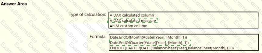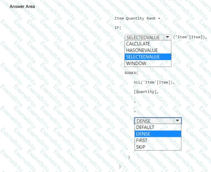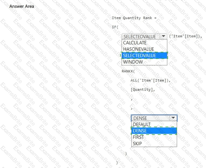 How should you complete the DAX expression? To answer, select the appropriate options in the answer area.