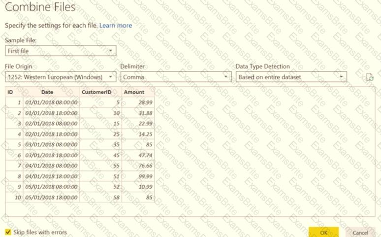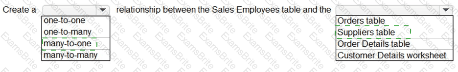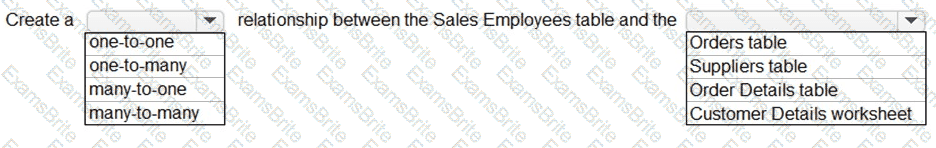 You use Power Query to import two tables named Order Header and Order Details from an Azure SQL database. The Order Header table relates to the Order Details table by using a column named Order ID in each table.