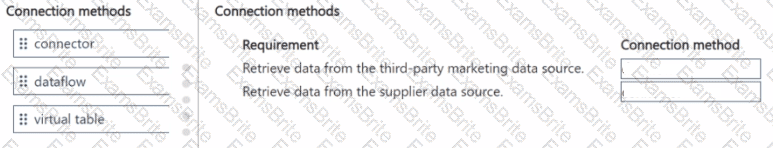 To answer, move the appropriate connection methods to the correct requirements. You may use each connection method once, more than once, or not at all. You may need to move the split bar between panes or scroll to view content.