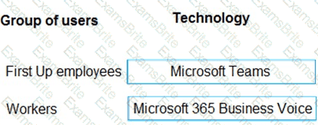 What should you recommend? To answer, drag the appropriate technologies to the correct groups of users. Each technology may be used once, more than once, or not at all. You may need to drag the split bar between panes or scroll to view content.