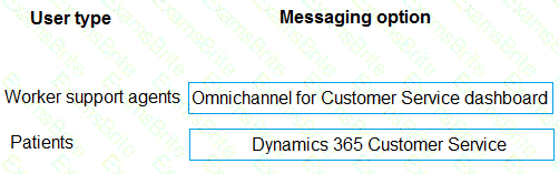 What should you recommend? To answer, drag the appropriate messaging options to the correct user types. Each messaging option may be used once, more than once, or not at all. You may need to drag the split bar between panes or scroll to view content.