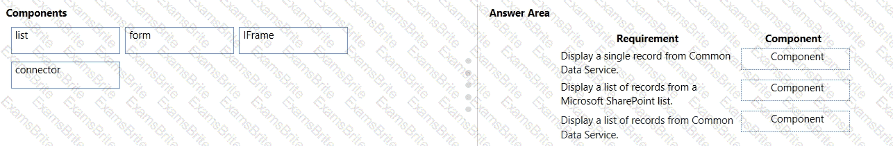 Which component types should you use for each scenario? To answer, select the appropriate options in the answer area.