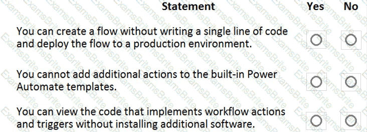 For each of the following statements, select Yes if the statement is true. Otherwise, select No.