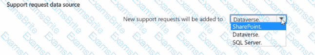 You are creating a Power Pages site for a company. The site will allow customers to track the progress of existing support requests and create new requests. You need to select the relevant data source for the Power Pages site. Select the answer that correctly completes the sentence.