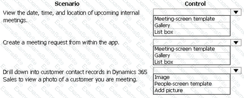 Which types of controls would you recommend using in Power Apps? To answer, select the appropriate control in the dialog box in the answer area.