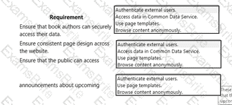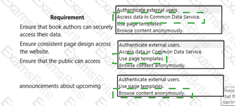 What should you recommend? To answer, drag the appropriate components to the correct requirements. Each component may be used once, more than once, or not at all. You may need to drag the split bar between panes or scroll to view content.