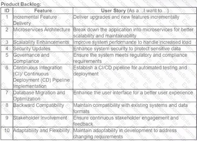 During a recent sprint review meeting with stakeholders, the product owner received detailed feedback indicating the critical changes needed for upgrading the legacy system to better align with the latest technologies and user needs. How should the product owner help ensure the product backlog is effectively managed, while helping the team remain focused? (Refer to the Product Backlog Exhibit)
