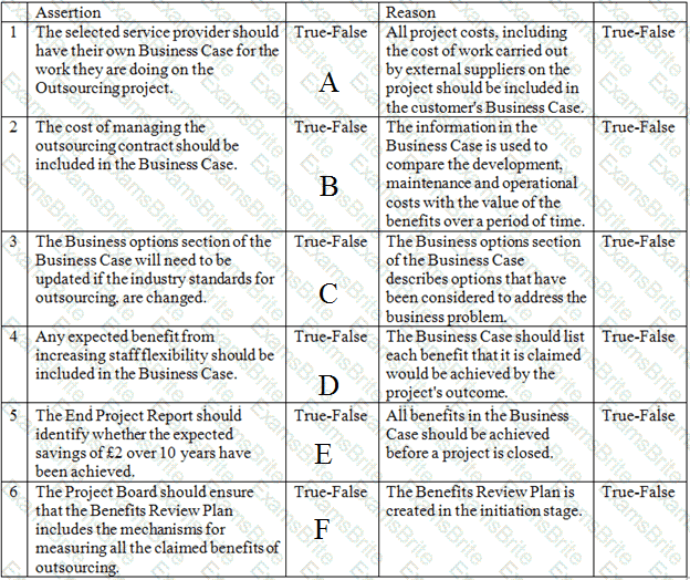 Lines 1 to 6 in the table below consist of an assertion statement and a reason statement. For each line identify the appropriate option, from options A to E, that applies. Each option can be used once, more than once or not at all.