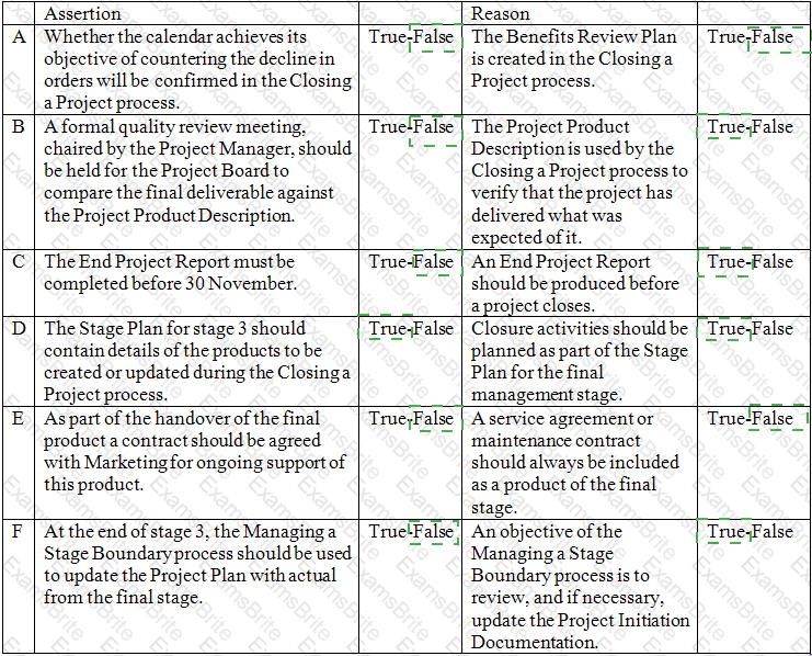 It is now late October and the project is in stage 3. The label design competition has been held and the photos of the staff have been taken. The CEO and Marketing Director still need to choose the winning label design and the 12 photos for the calendar. However, the Executive has learned that two competitors are issuing calendars to MNO's customers by the middle of November. After analyzing the impact of this Issue, one of the options the Project Manager has presented to the Project Board is to close the project prematurely.