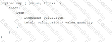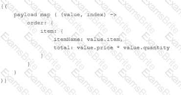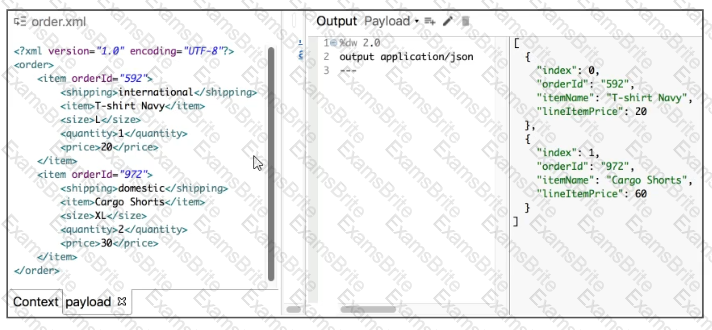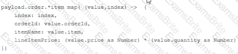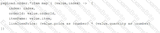 The Set Payload transformer In the addltem subflow uses DataWeave to create an order object.