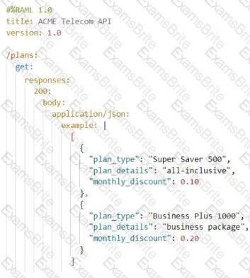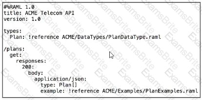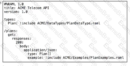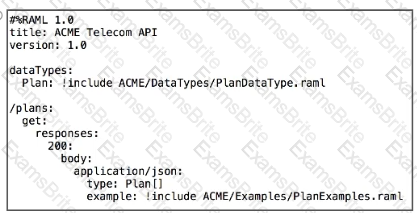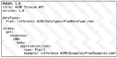 The API needs to be updated using the company-wide standard for the Plan data type. The Object data type has already been published in Anypoint Exchange with the global reference . ACME/DataTypes/PlanDataType.raml.