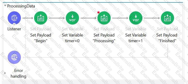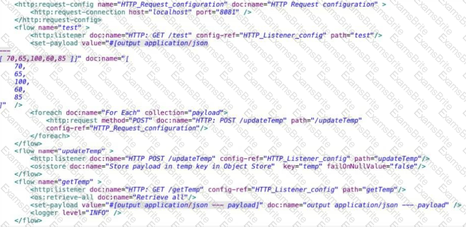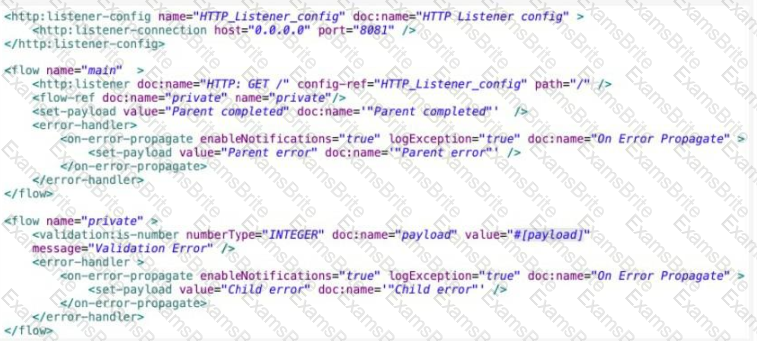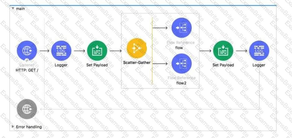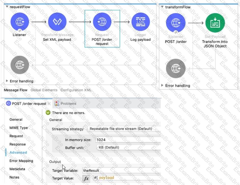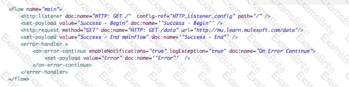 Refer to the exhibit. The main flow contains an HTTP Request in the middle of the flow. The HTTP Listeners and HTTP request use default configurations.