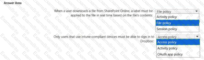 Which type of policy should you recommend for each requirement? To answer, select the appropriate options in the answer area.