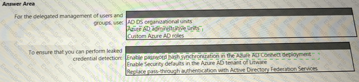 You need to recommend a strategy for securing the litware.com forest. The solution must meet the identity requirements. What should you include in the recommendation? To answer, select the appropriate options in the answer area. NOTE; Each correct selection is worth one point.