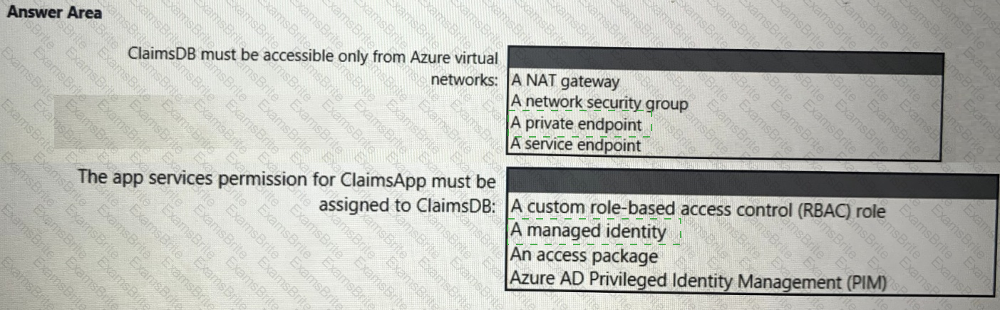 You need to recommend a solution to meet the requirements for connections to ClaimsDB.